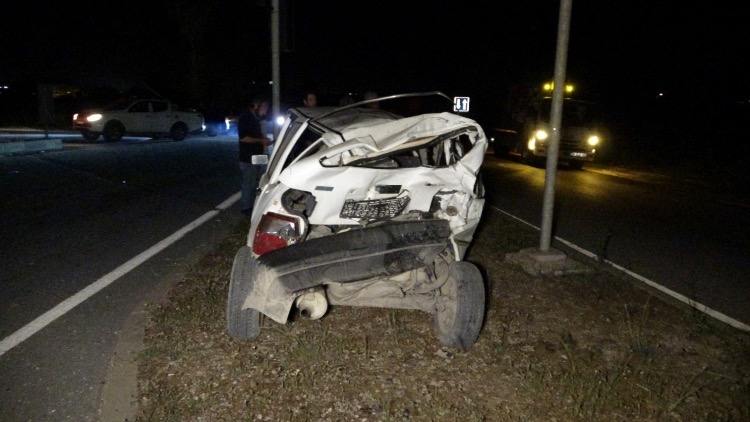 Antalya'da kamyon kırmızı ışıkta bekleyen otomobile arkadan çarptı.
