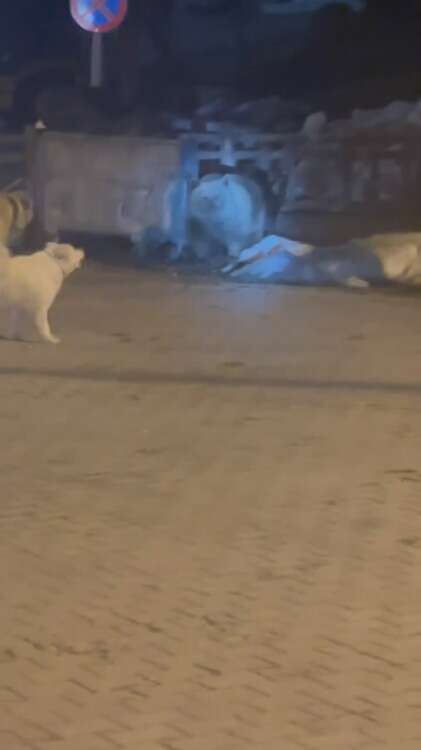 Kış uykusundan uyandı, çöpleri böyle devirdi