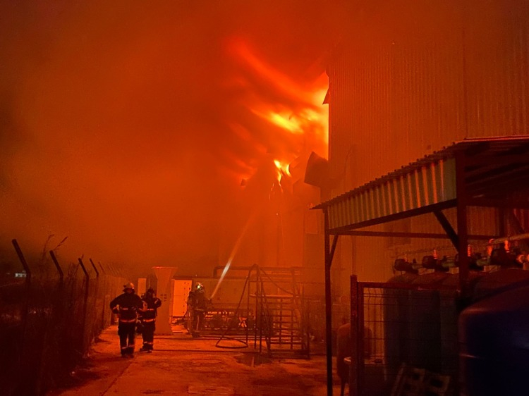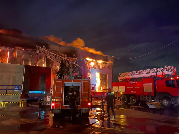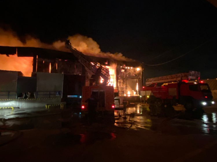 Yaklaşık 10 bin metrekarelik depo alanının 5 bin metrekarelik bölümünde, temel gıda ürünlerinin bulunduğu kısımda etkili olan yangını kontrol altına almak için ekipler yoğun çaba gösterdi.