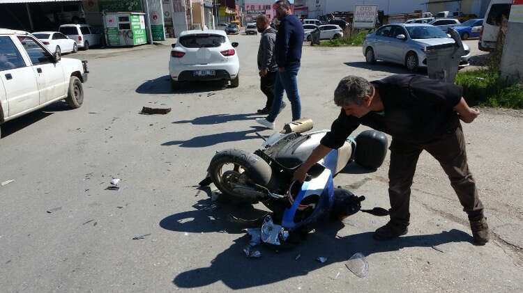 Antalya’nın Manavgat ilçesinde motosikletin otomobile çarpması sonucu meydana gelen kazada 1 kişi yaralanırken, kaza anı güvenlik kamerasına yansıdı.