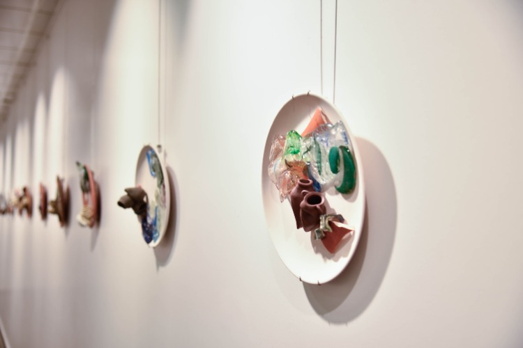 Yaklaşık 40 eserin yer aldığı sergide, seramik tabaklar üzerine oluşturulan özgün kompozisyonlar dikkat çekti. Geri dönüştürülmüş seramik ve cam malzemelerle üretilen eserler, denizle kurulan ilişkinin zaman içinde bıraktığı izleri ve yolculuklar sırasında biriken anıları görünür kıldı. Cam malzeme denizin ışığını ve rengini yüzeylere taşırken, seramik malzeme antik yolculukları ve kıyı yaşamını çağrıştıran bir zemin sundu.