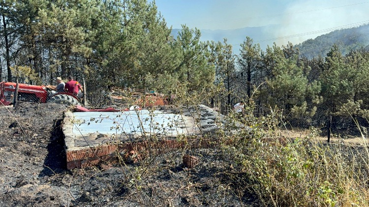 Düzce-Sakarya sınırında ormanlık alanda çıkan yangına havadan ve karadan müdahale sürüyor. Ekiplerin yanı sıra alevleri söndürebilmek için vatandaşlar da seferber oldu. Hendek ilçesi Hacimbey Mahallesi'nde bulunan bir evin ardiyesine de alevler sıçradı. Ardiye kullanılamaz hale geldi.