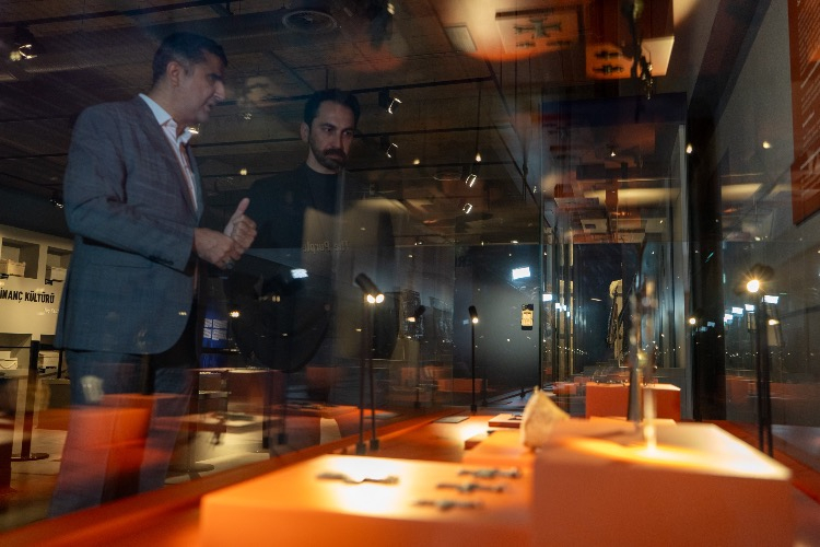 Kültür ve Turizm Müdürü İbrahim Sudak ile birlikte Manisa Müzesindeki eserleri inceleyen AK Parti MKYK Üyesi ve Manisa Milletvekili Mücahit Arınç, sergilenen eserler hakkında bilgi aldı.