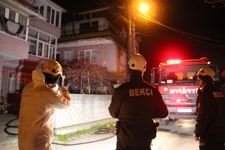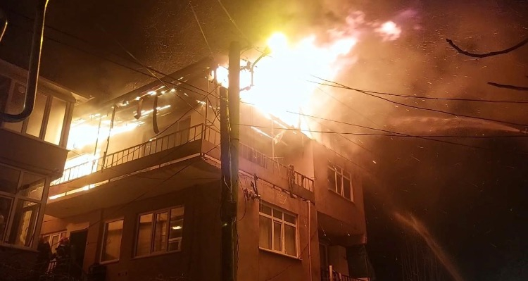 Sakarya'nın Akyazı ilçesinde 3 katlı binanın en üst katı alev alev yandı.