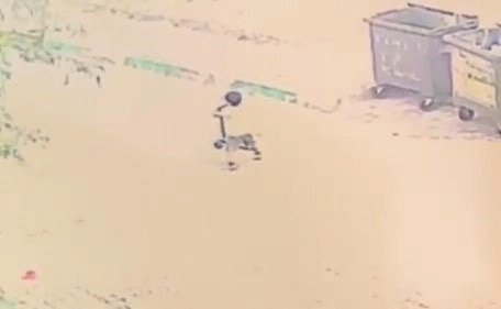 Ağır yaralanan çocuğun kaza anı bir işyerinin güvenlik kamerasına saniye saniye yansıdı.