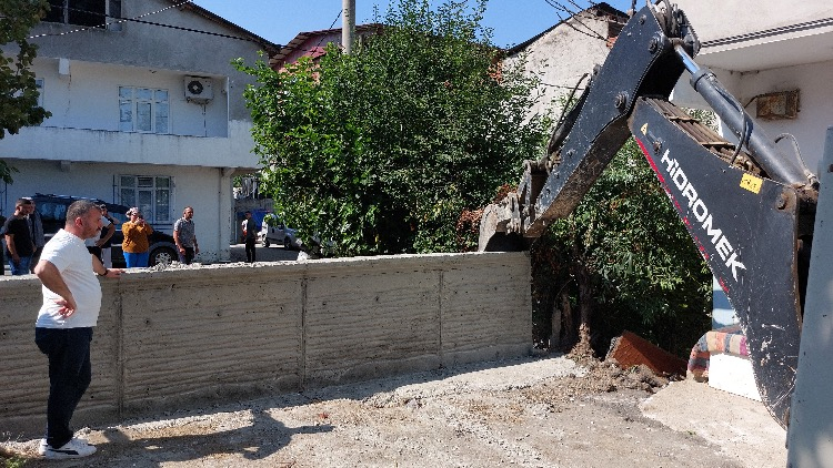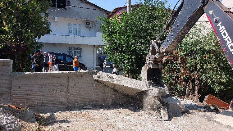 Samsun'da bir vatandaşın tapulu arsasından geçtiğini öne sürdüğü mahalle yolunu beton duvarla kapatması mahallelinin tepkisine yol açtı.