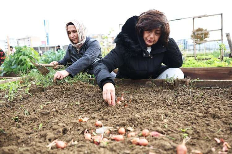 Nilüfer Belediyesi, kent merkezinde yükselen binaların arasında kurduğu bostanlara, fide ve tohum desteği yapıyor, sulamasını gerçekleştiriyor ve mahalleliye devrediyor.