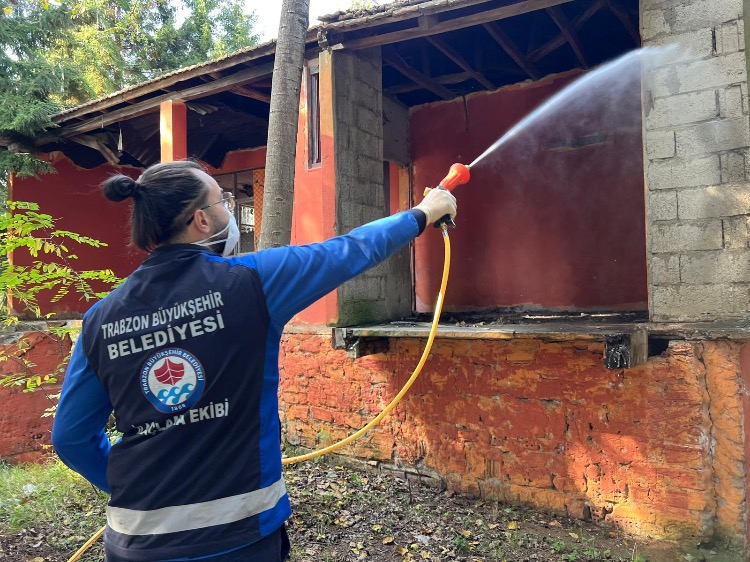 Trabzon Büyükşehir Belediyesi ekipleri, kent genelinde yürütülen çalışmalarda 18 ilçede ilaçlama yaptı. Belediye yetkililerinden alınan bilgiye göre, 9 ekip ve 18 kişilik personel tarafından yürütülen çalışmalar kapsamında yaklaşık 22 bin noktada kışlak mücadelesi gerçekleştirildi. Bu çerçevede 1 milyon 400 bin metrekarelik alan ilaçlanarak zararlı popülasyonunun azaltılması hedeflendi.