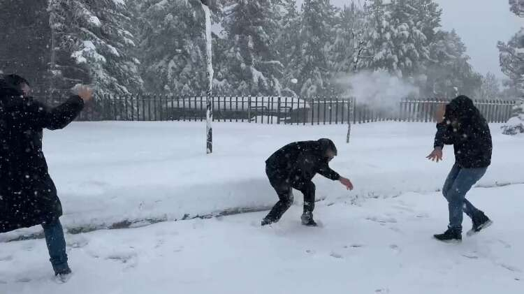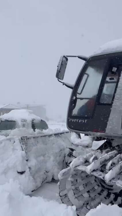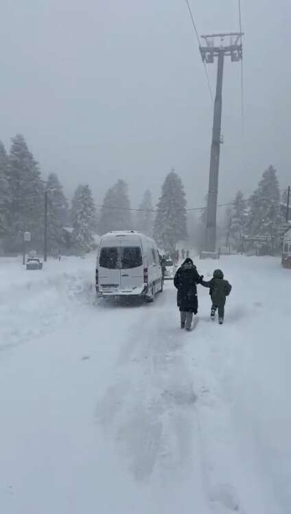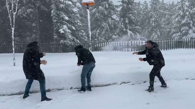 Uludağ'da zor anlar...Kimisi zıplayarak kurtulmaya çalıştı, kimisini kar küreme aracı sürükledi