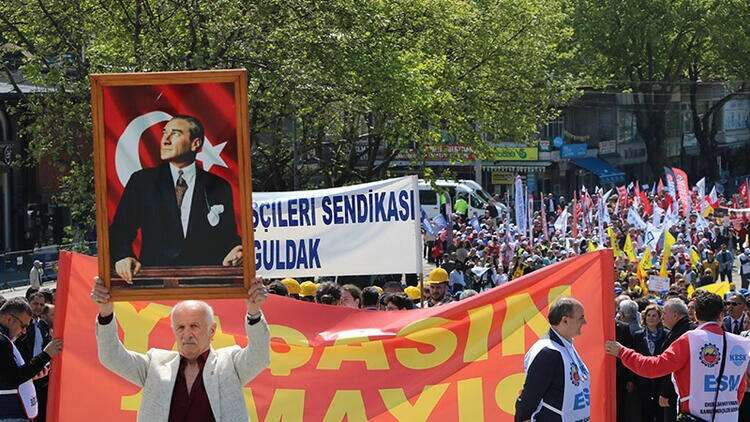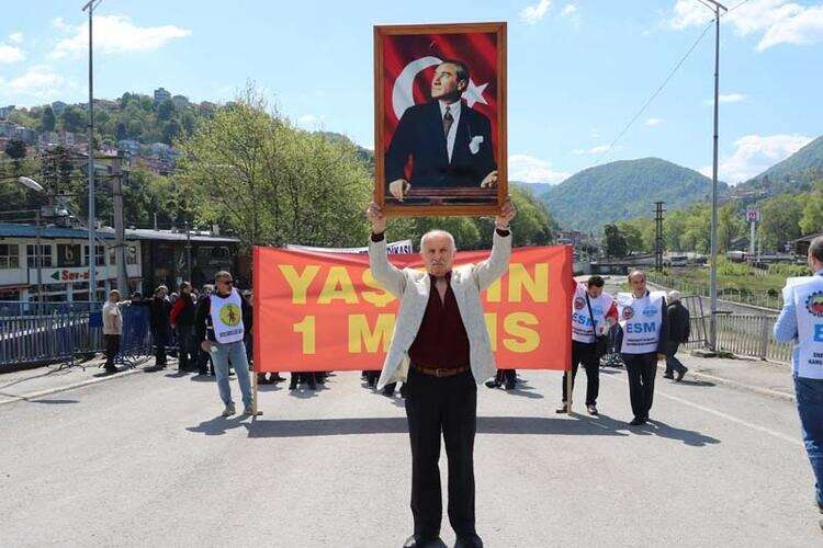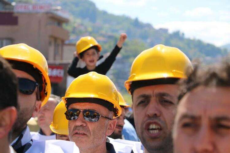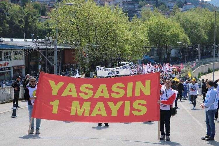 Emeğin başkenti olarak anılan Zonguldak'ta 1 Mayıs Emek ve Dayanışma Günü'nde işçiler, Madenci Anıtı'na kadar yürüdü.