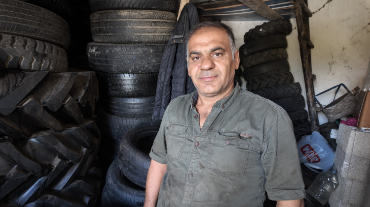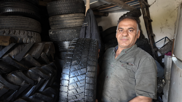 Siirt'te yaşayan 50 yaşındaki İbrahim Öztaş, 35 yıldır oto lastik tamiri yapıyor.