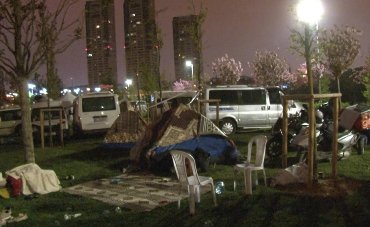 İstanbul'daki 6.2'lik depremin ardından vatandaşlar ikinci günde de parklarda çadırda kalmaya devam etti.