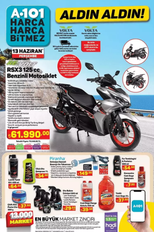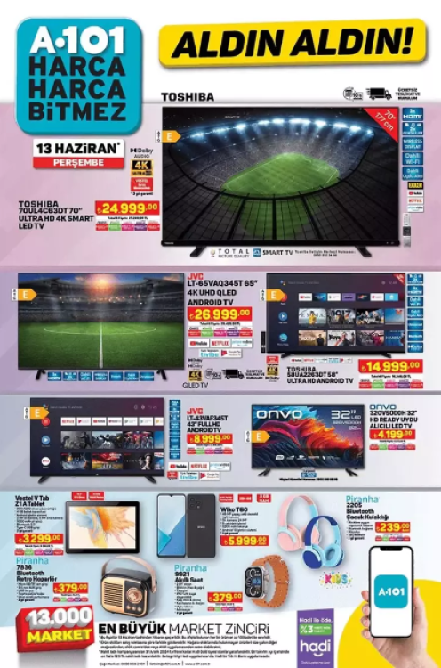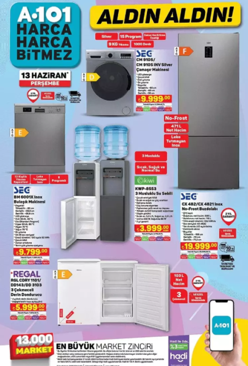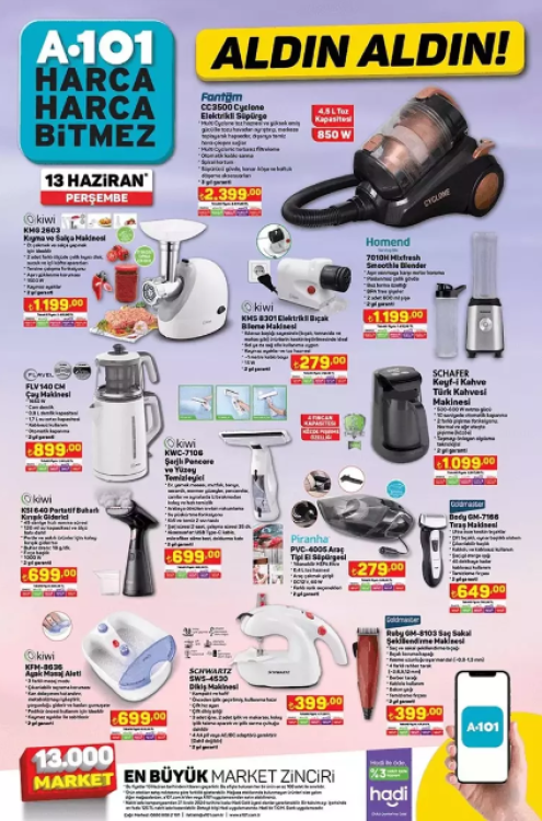 A101’in bu haftaki kampanyasında yer alan ürünler, her evin ihtiyacını karşılayacak nitelikte ve cazip fiyatlarla satışa sunuluyor. Kaçırılmayacak fırsatlar için 13 Haziran Perşembe günü A101 mağazalarını ziyaret etmeyi unutmayın!