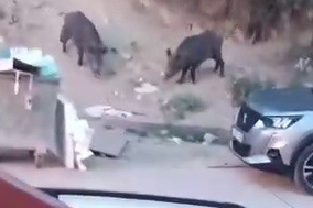 Sıklıkla bölgede yaşayan vatandaşlarca görülen domuzlar, geçtiğimiz gün çöp konteynerinin çevresinde yem ararken görüntülendi. Bir süre yem arayan domuzlar, çevreye zarar vermeden gözden kayboldu. Domuzların gezindiği anlarsa kameraya yansıdı.