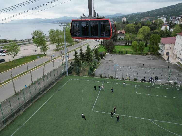 Trabzon’un Beşikdüzü ilçesinde vargel sisteminin bulunduğu ve 55 kişilik çift kabinli teleferik istasyonundaki tatbikatta senaryo gereği arıza durumunda teleferikte mahsur kalan vatandaşları kurtarmaya yönelik tahliye işlemi gerçekleştirildi. Tatbikatta itfaiye ekipleri de yer alırken, güvenlik önlemleri eşliğinde kabinde yer alan tahliye kapağının açılmasıyla yolcular halat yardımıyla futbol sahasına indirildi.