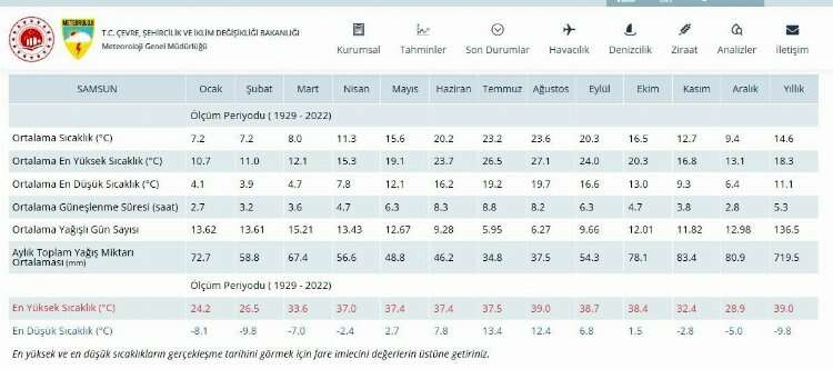 Meteoroloji Genel Müdürlüğünden alınan bilgiye göre Samsun’un Aralık ayı sıcaklık ortalaması 9,4 derece. Aralık ayında en yüksek ortalama sıcaklık değeri 13,1, en düşük ortalama sıcaklık ise 6,4 derece. 1927'den beri en yüksek hava sıcaklığı 28,9 derece ile 4 Aralık 2010’da yaşanmış. En düşük sıcaklık ise 31 Aralık 1941’de eksi 5 derece olarak kayıtlara geçmiş.