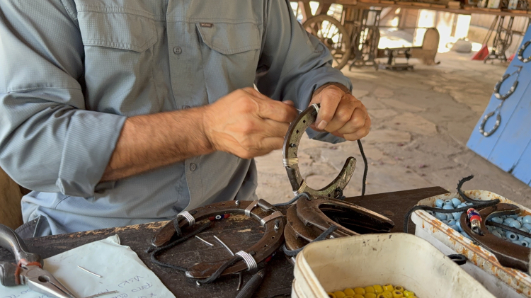 Köy kökenli olan herkesin evlerinde at nalı olduğunu vurgulayan Murat Seyok, "Benim hobim eski at nallarını değerlendirmektir. Çocukluğumuzdan beri evimizde at olduğu için evlerimizin duvarlarında at nalı vardı. Köylerde bir şekilde evlerde at nalı vardır. Burada bir işletme açtık ve dekor ihtiyacı duyduk. Bu dekor ihtiyacı için at nalı çalışması yapmak istedik. Zamanla geliştirerek otantik bir ürün ortaya çıktı. İnsanların da bu hoşuna gitti. Bu üründe yaptığımız şeyin özelliği ise at nalı hariç kalanların hepsi geri dönüşüm ürünleri. Boncukları Ege Bölgesi'nden alıyorum. Eski cam ocaklarında Etiyopyalı ustaların yaptığı ürünler boncukları kullanıyorum. At nalları bir dönem atın ayağında kullanılıyor. Belli bir süre sonra bunlar aşınıyor. Daha sonra çöpe atılmak yerine değerlendirilmesi için böyle bir şey yapıyoruz" şeklinde konuştu.