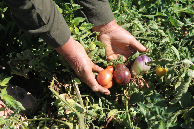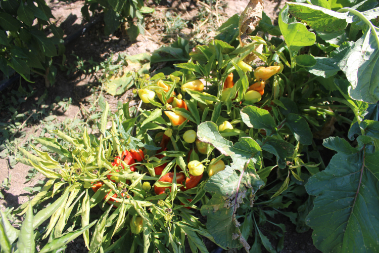 Ata tohumuyla sarıdan siyaha kadar üretilen domates ve biberler, bahçede renk cümbüşü oluşturuyor