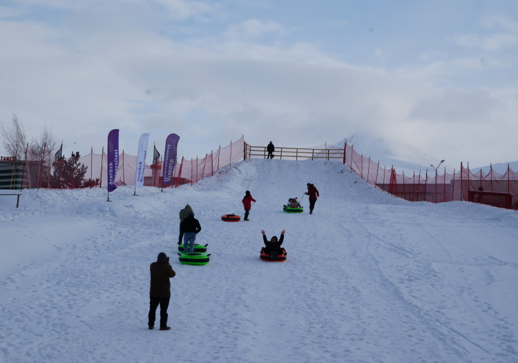 Dünyanın ve Türkiye'nin en önemli kayak pistlerini bünyesinde bulunduran Palandöken Kayak Merkezi yoğun ilgi devam ederken, Atatürk Üniversitesi yönetimi kampüs içinde de kayak ve kızak keyfi yaşamak isteyen öğrenciler için bir pist yaptı.