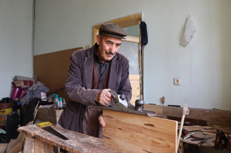 Hayatını el becerileriyle sürdürmeye çalışan Hüsamettin Aras, "Benim 65 yaş maaşımdan başka bir gelirim yok. Evim kira. Dışarıdan bulduğum ağaç parçalarını komşularımın desteğiyle getiriyorum. Onlardan baston, oyuncak öküz arabası, sofra gibi ürünler yaparak geçimimi sağlamaya çalışıyorum" dedi.