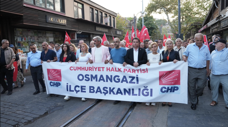 Osmangazi Belediye Başkanı Erkan Aydın, 30 Ağustos Zafer Bayramı dolayısıyla CHP İlçe Teşkilatı'nın organize ettiği yürüyüşe katıldı.