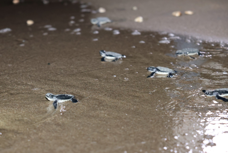 Mersin'in Akdeniz ilçesindeki Kazanlı sahilinde yumurtadan çıkan caretta caretta ve yeşil deniz kaplumbağaları denizle buluşuyor.