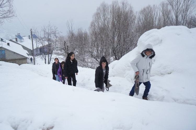 Poşetle şeker topladığını söyleyen Nursema Özçelik, "Köyümüzde çok kar var. Biz karın içinde dolaşıyoruz, şeker topluyoruz. Amcalarımız bize şeker veriyor, poşetlerimizi şekerle dolduruyoruz. Köyümüze hoş geldiniz. Evlerimiz ve sokaklarımız adeta tünel gibi; o tünellerden geçerek bayramlaşıyoruz" ifadelerini kullandı.
