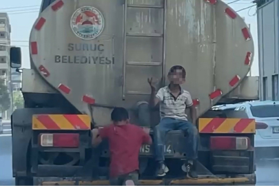 Şanlıurfa’nın Suruç ilçesinde çocukların araçların arkasına tutunarak tehlikeli bir şekilde yolculuk yapmaya çalışması yürekleri ağızlara getirdi.