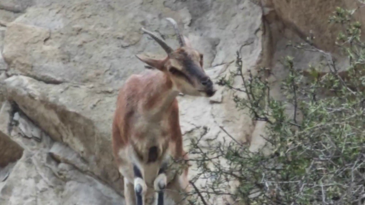 Erzurum'un Uzundere ilçesinde dağ keçileri yavruları ile birlikte görüntülendi.