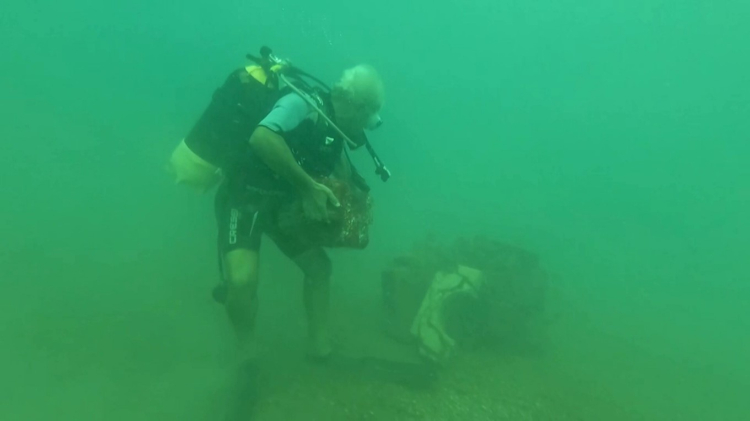 Antalya'nın dünyaca ünlü Konyaaltı Sahili'ne dalış yapan Prof. Dr. Mehmet Gökoğlu, taş ve beton bloklarla yapay resif yaptı.