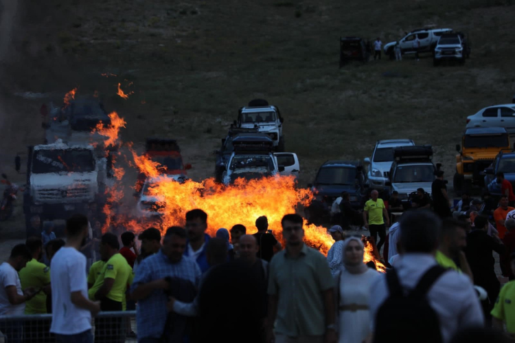 Dev ateşin etrafında toplanan misafirler geceyi kamp yaparak geçirdiler.