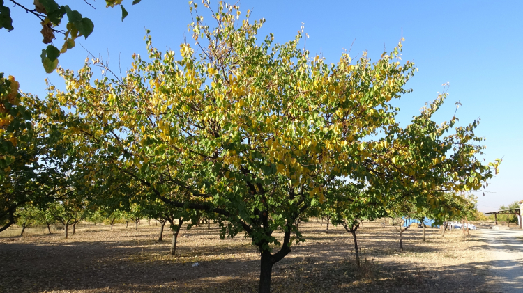 Malatya’da, Nisan ayında yaşanan zirai don nedeniyle büyük zarar gören kayısı bahçeleri, çiftçilerin bakım çalışmalarıyla yeniden yeşerirken, sonbaharın etkisiyle ağaçlar sarıya büründü.