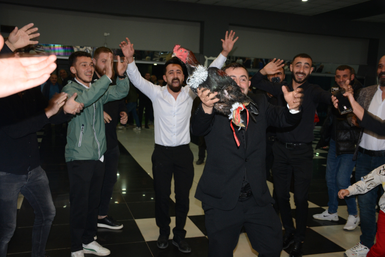 Artvin'de bir düğünde damadın arkadaşları, Tayland'dan getirdikleri canlı tavuk ve horozu hediye ederek sıra dışı bir takı törenine imza attı.