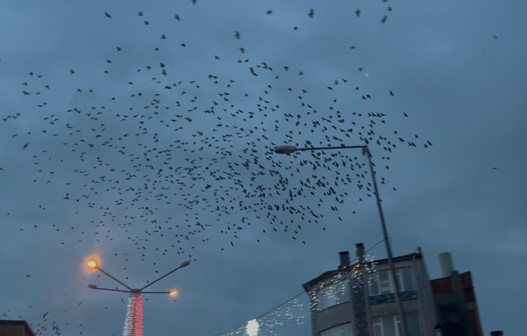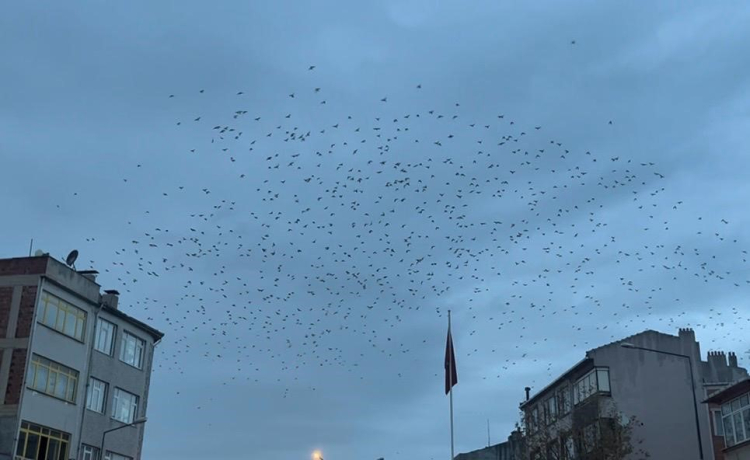 Gökyüzünü kaplayan kalabalık karga sürüsü, vatandaşları şaşırttı