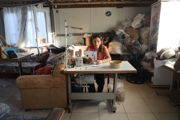 Depremden sonra öğrendiği el işini yaparak ailesini geçindirmeye çalışan 4 çocuklu anne Gülhan Hüzmeli, "Depremde evimiz yıkıldı, o gece hayatımız sarsıldı. O geceden beri hayata karşı zorlu mücadele veriyoruz. Depremden önce terzilik mesleğini yapıyordum. Depremden sonra el işini öğrendim. Çamaşır sepeti, supla, çanta, organize sepetler gibi birçok ürünleri dikiyorum. Evimi geçindirmek için bu işi yapmaya karar verdim. Dikiş makinasını bir hocamız sayesinde aldım. Benim 4 çocuğum var ve eşim engelli durumu var. Eşimin tedavi edilmesi gerekiyor ama tedavisini karşılamakta zorlanıyorum. Eşim 4 defa anjiyo ameliyatı oldu ve tedavisi sürüyor. El işini hem evi geçindirmek hem de eşimin tedavisini karşılamak için çabalıyorum. Yaptığım ürünlerin fiyatını çeşidine göre değişiyor ama elimden geldiğince uygun vermeye çalışıyorum. Fiyat olarak ortalama 100 ila 300 TL arasında satıyorum. Makinemin akışına göre ürünleri yapma hızım değişiyor. Normal olarak bir çantayı dikmek 30 dakika ama işçiliği varsa 1,5 saat sürüyor. Bu konteyner de aileme yemek yapıyorum, yemeğimi yaptıktan sonra el işi yapıyorum. Çocuklarım uyuduktan sonra veya boş olduğum her anda dikiş yapıyorum. Yaşadığım konteyner; evim, iş yerim ve mutfağım oldu ve bu şekilde yaşıyoruz" ifadelerini kullandı.