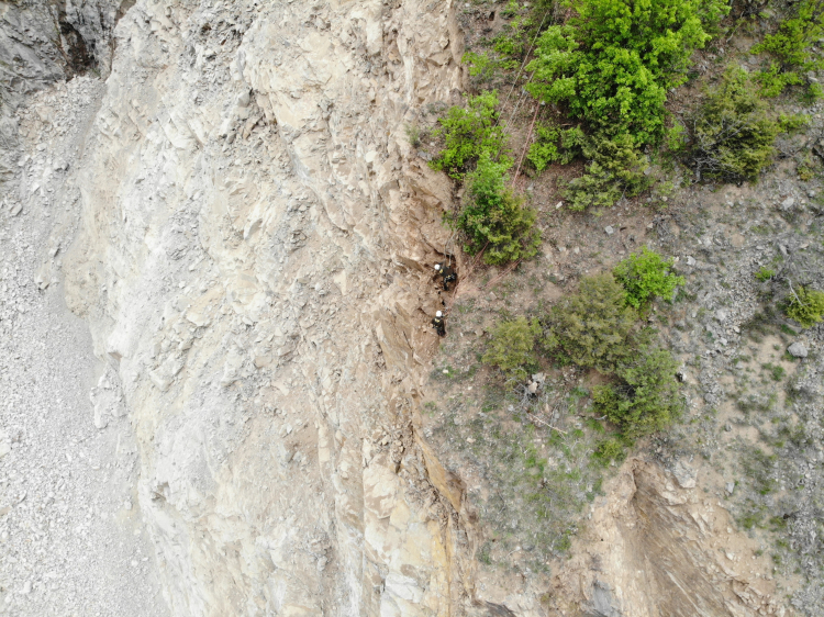 Kürtün ilçesine bağlı Özkürtün Beldesi Karaçukur Mahallesi İncirli Köyü mevkiinde geçtiğimiz 22 Nisan günü meydana gelen ve Gümüşhane-Giresun karayolunu tamamen ulaşıma kapatan heyelanı temizleme çalışmaları aralıksız sürüyor. Dağcılar heyelanın meydana geldiği dağ yamacında riskli kayaları temizlerken, DSİ ve Karayolları’na ait iş makineleri de yolu temizliyor. Heyelandan bir gün önce arazisine gitmek için kullandığı patika yolda çatlakları gören ve durumu hemen yetkililere bildirerek olası bir facianın önüne geçen Recep Aslan ise kütlenin hareket halinde olduğunu ve ihbarın hemen ardından yetkililerin bölgede güvenlik önlemi aldığını söyledi.