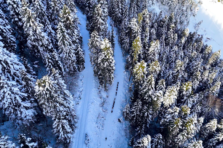 Kristalize kar taneleri eşliğinde ilerleyen ekip orman içindeki yatay geçişlerde çam ağaçlarının üzerine çöken kar yükününün oluşturduğu masalsı görüntüleri bol bol fotoğrafladı.