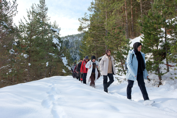 Gümüşhane'de şehrin gürültüsünden ve boğucu havasından uzaklaşmak isteyen 22 doğasever, bu hafta Torul ilçesinin karlar altındaki eşsiz coğrafyasında bir araya geldi.
