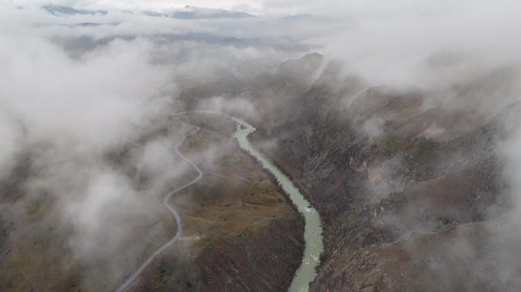 Erzincan-Kemah güzergâhı boyunca uzanan Munzur Dağları, son günlerde sis bulutlarının etkisi altına girdi. Doğanın renk değiştiren tonlarının sisle bütünleşmesi, adeta kartpostallık manzaralar oluşturdu. Bölgeden drone ile kaydedilen görüntüler, izleyenleri büyüleyen bir görsel şölen sundu.