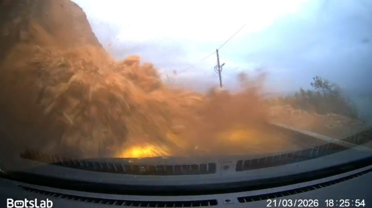 Öte yandan heyelan anı, olay sırasında toprak ve kaya parçalarının altında kalan aracın araç kamerasına yansıdı. Görüntülerde, otomobilin bir anda yuvarlanan toprak ve kaya parçalarının altında kaldığı, bu sırada