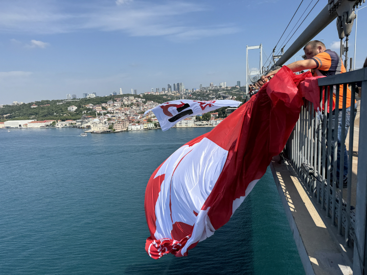 İstanbul'da köprülere dev Türk bayrakları asıldı