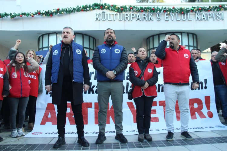 İzmir Büyükşehir Belediyesi’nin iştirakleri İZENERJİ, İZELMAN, İZFAŞ, EGEŞEHİR ve İZTEK’te çalışan işçilerin ödeme krizi ve işten çıkarmalara karşı başlattıkları eylemler 5’inci gününde devam ederken, gözler bugün saat 13.00’te yapılacak kritik görüşmeye çevrildi. Aylardır ödenmeyen haklar, TİS (toplu iş sözleşmesi) ödemelerinin yapılmaması, maaşların eksik yatırılması, işten çıkarılan işçilerin geri alınmaması ve "havuz sistemi" olarak bilinen uygulamadaki sorunlar nedeniyle eylemlerini sürdüren işçiler, bugün de Kültürpark Basmane Kapısı önünde toplanarak basın açıklaması yaptı.