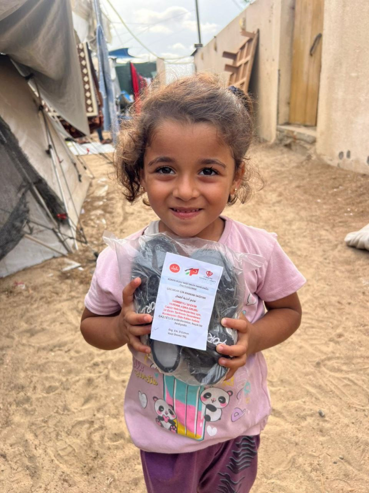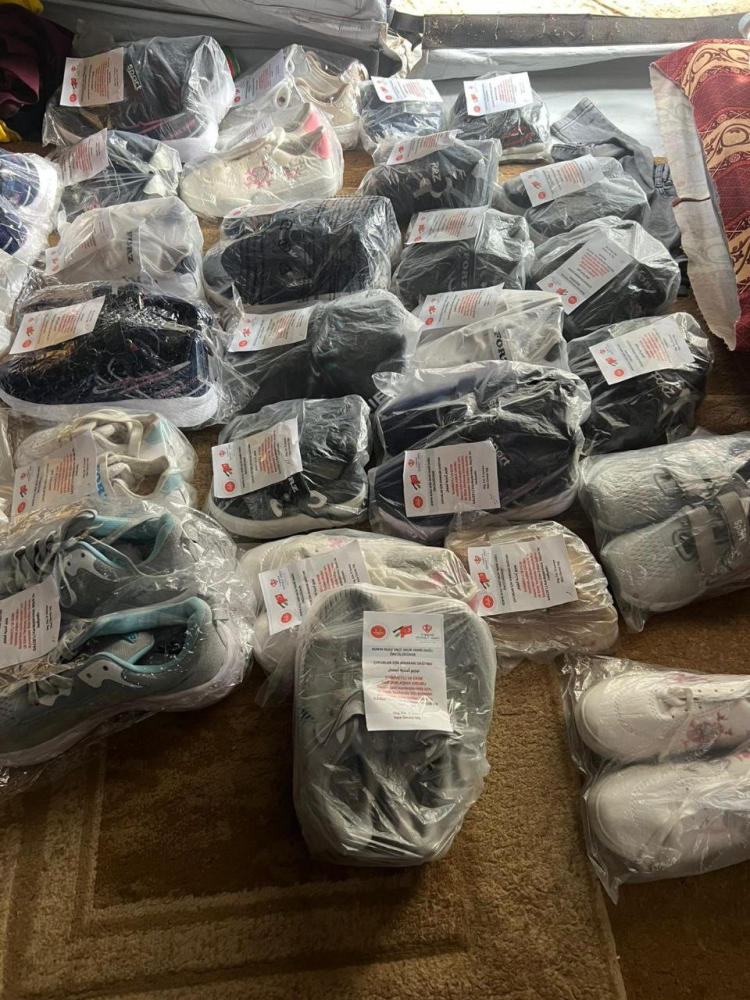 Adana’nın Saimbeyli ilçesinde kadınların emekleriyle hazırlanan yiyecek ve el sanatlarından elde edilen 84 bin TL sayesinde alınan ayakkabılar Gazzeli çocuklara ulaştırıldı.