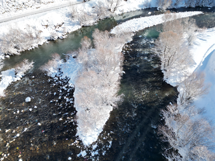 Havadan görüntülenen Habur Çayı ve ağaçların yanı sıra köylerin güzelliği göz kamaştırdı. Kar kalınlığının yer yer 2 metreyi bulduğu ilçede doğanın beyaz rengi ile su birleşince göz kamaştıran görüntüler ortaya çıktı. Masalsı görüntülerin adresi Şırnak oldu.