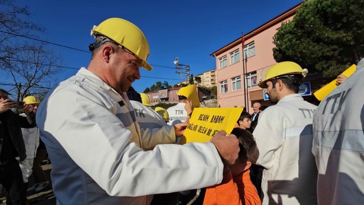 Günün en anlamlı anları ise sergi sonrasında Ziya Gökalp Ortaokulu'nda yaşandı. Türkiye Taşkömürü Kurumu (TTK) Genel Müdürlüğü tarafından organize edilen programda, madenciler çocuklarının eğitim gördüğü okula geldi.