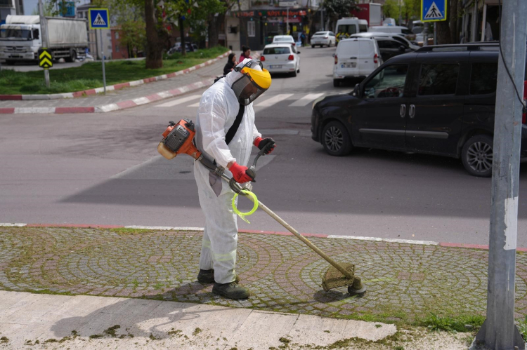 Çalışmalar kapsamında sokak, cadde, orta refüjler ve yeşil alanlarda bulunan yabani otlar, ekipler tarafından etap etap temizleniyor. Ayrıca ilçe genelinde kaldırım ve duvar kenarlarında görüntü kirliliği oluşturan yabani otlara da müdahalede bulunan ekipler, boş arazilerde de muhtemel bir yangını önlemek amacıyla ve kene gibi böceklere karşı yabani otları temizliyor.
