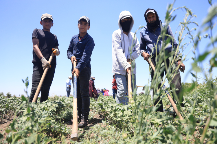 Hava sıcaklıklarının artmasıyla Hatay'da termometreler 40 dereceyi aştı. Kavurucu sıcak en çok tarım arazilerinde zorlu şartlarda çalışan tarım işçilerini etkiliyor. Reyhanlı ilçesi Beşaslan Mahallesi'ndeki 150 dönümlük pamuk tarlasında yabani otları temizleyen tarım işçileri, 650 TL yevmiyeyle zorlu mesaiyi sürdürüyorlar. Kavurucu sıcaklılara rağmen zorlu şartlarda mesai yapan tarım işçileri, sıcaklığın yüksek olduğu günlerde yarım gün mesai yaparak çalışıyor.