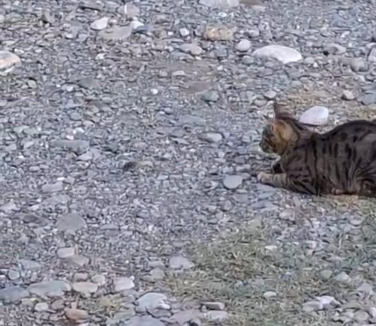 Kedi, Bahçede Karşılaştığı Fareyle Dakikalarca Oynadı