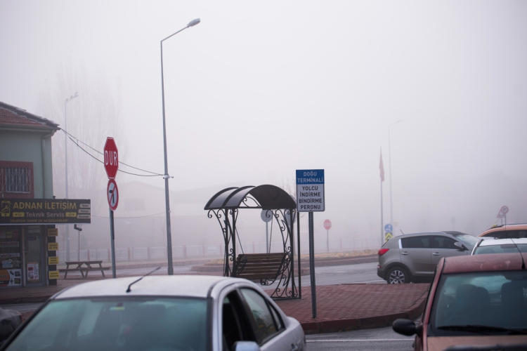 Kayseri'de etkili olan sis görüş mesafesini düşürdü.