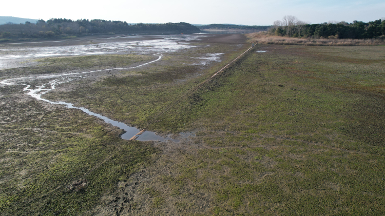 İstanbul'un önemli su kaynaklarından biri olan Terkos Gölü'nde yaşanan kuraklık nedeniyle su seviyesi ciddi oranda düştü.